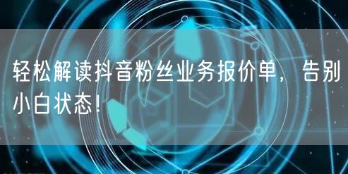 随着抖音平台的日益普及,越来越多的用户开始关注抖音粉丝业务。然而,面对复杂的报价单,许多用户往往感到困惑和不知所措。本文将带领大家轻松解读抖音粉丝业务报价单,告别小白状态,帮助大家更好地了解并选择适合自己的业务。