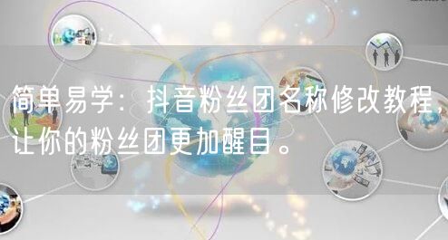 通过本文提供的简单易学的抖音粉丝团名称修改教程,相信你可以轻松修改粉丝团名称,让粉丝团更加醒目。在修改名称时,注意遵守相关规定和法律法规,确保名称的合法性和合规性。最后,祝你在抖音上获得更多粉丝的关注和支持!