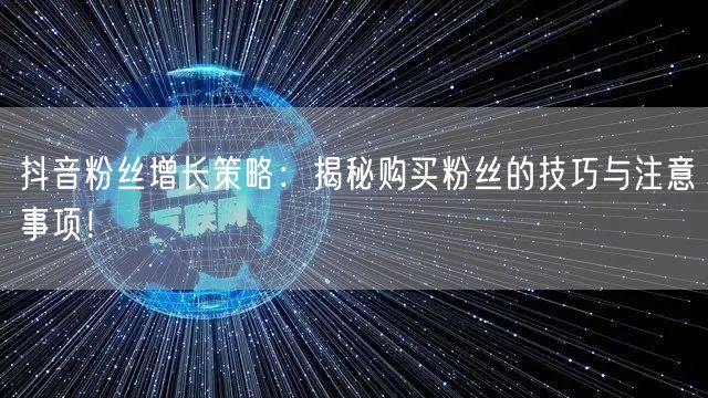 本文详细介绍了抖音粉丝增长策略,包括购买粉丝的技巧与注意事项。希望读者能够了解如何安全、有效地增加抖音粉丝,提升个人或品牌的影响力。在实际操作中,要综合运用各种策略,注重内容质量,保持与粉丝的互动沟通,实现抖音粉丝的长期稳定增长。